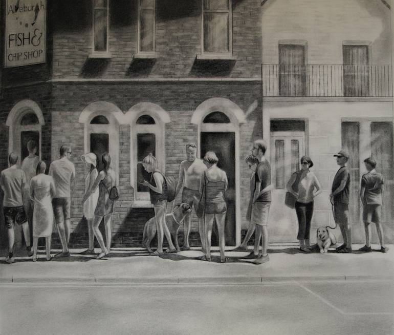 connoisseurs is based on a visit to the suffolk seaside town of Aldeburgh in Suffolk in the UK.The queue for the local fish and chip shop extended along the path for approximately 50 yards.Apparently It's quite common to have this ammount of people waiting since it's one of the most popular fish and...