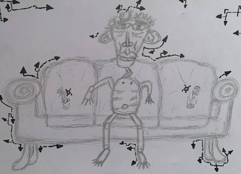 Hi, This piece is called ''Couch face''. There isn't much meaning in this piece, but it is simply a drawing I did. I let my creativity go, and it gave this. This is more of an illustration piece where I don't add many abstract elements to it. I just used a pencil for the drawing, and then I added th...