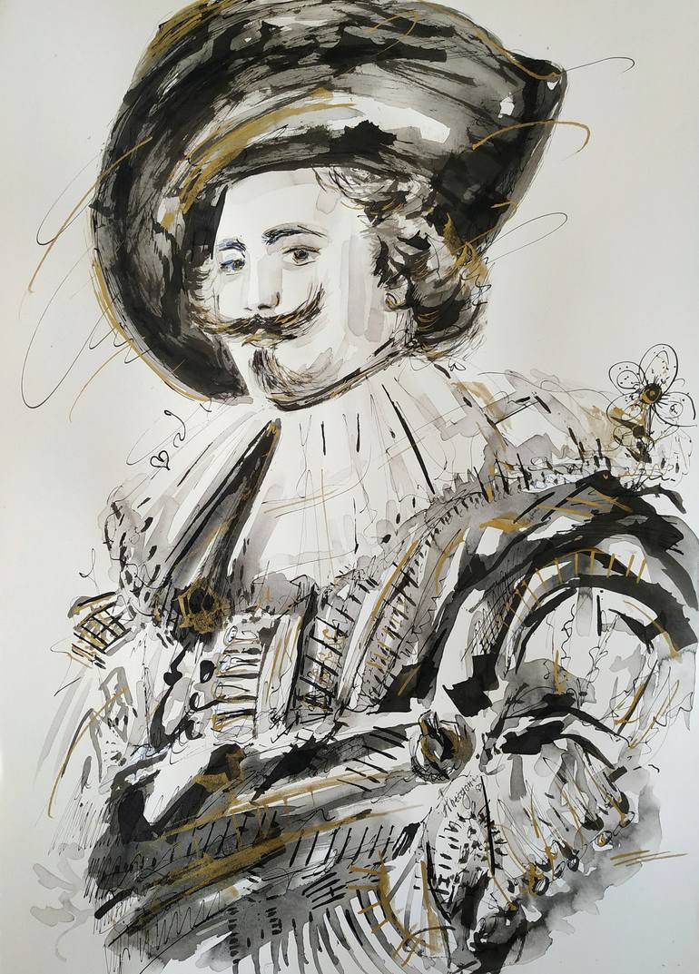 Homage to Frans Hals Painted on Fontaine 100% cotton , Hot Press 140lbs/300gsm watercolor paper. Ink on paper