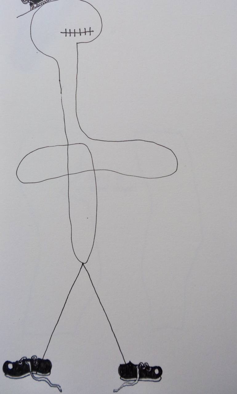 This is a simple line drawing of a very stylish doodle...even though his shoelaces are untied.