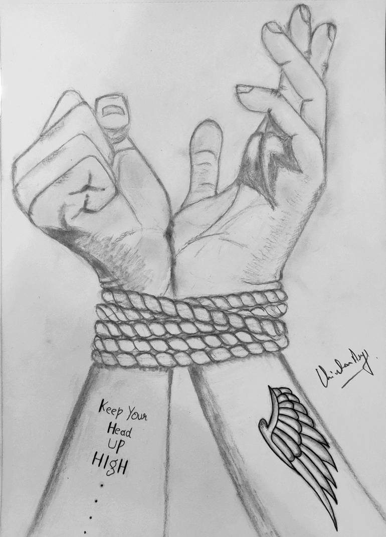 I see a person who is trying so hard to get something he wished. What I feel is his pain of the scars it embeds while he achieves what he wished. I used graphite pencils and ink pens on a 200g white paper.