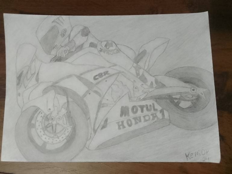 Desenho motocicleta grafite lapis preto papel a4 180g
