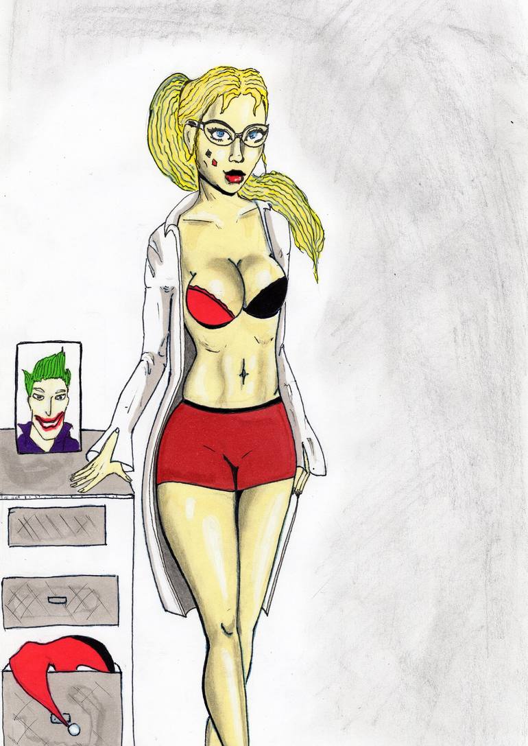 Sexy pin up drawing of Harley Quinn. Inspired by the DC comics.