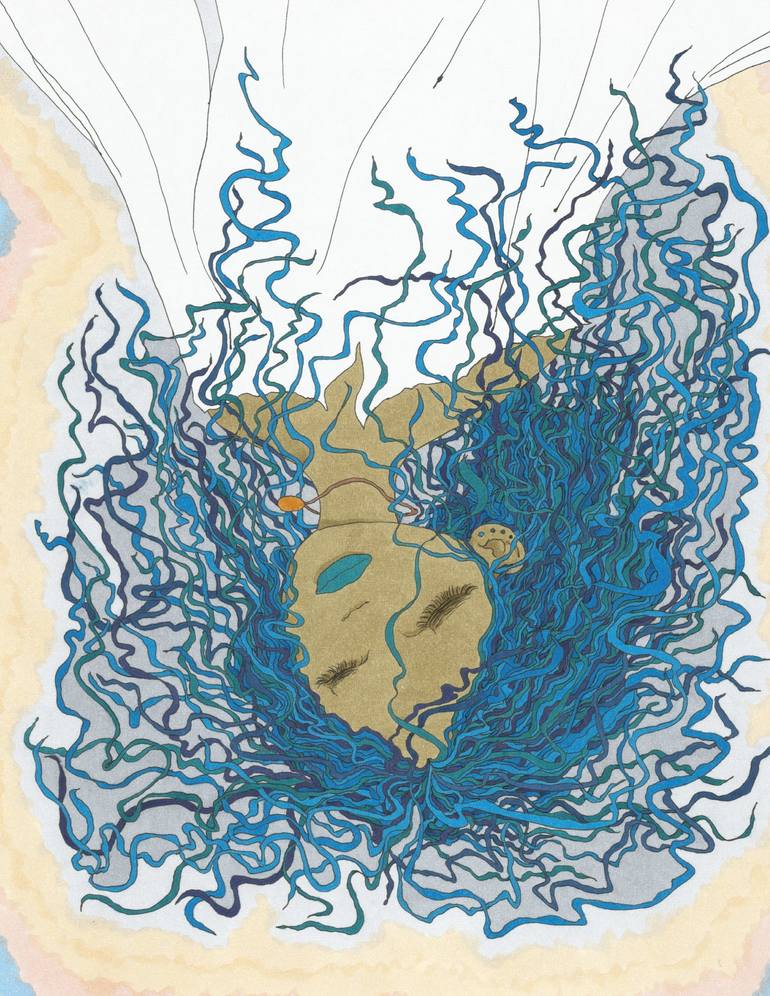 I'd like to think this one works both upside down and right side up. I also wanted her hair to look like coral, like she's ok being part of the marine life, because she's accepted her death.