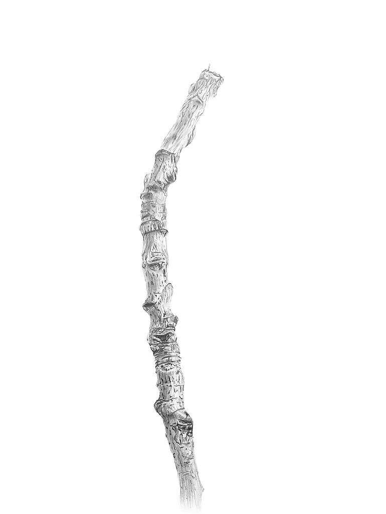 In this work, I wanted to convey the character and expressiveness of a simple dry branch. I aimed to highlight its curved shape, the texture of the bark, and the many small details that can be seen upon close observation. The drawing is made with pencil on Bristol 180 grams/meter paper.