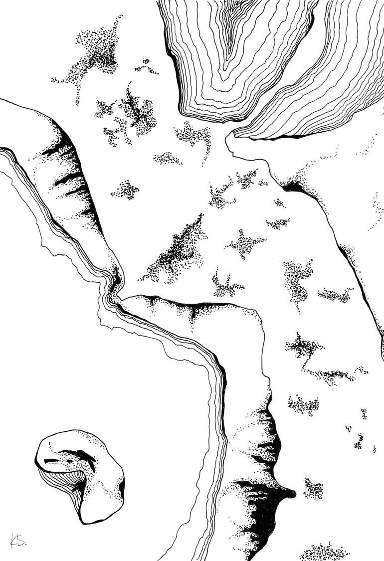 Karina Salfeld is a Stuttgart area based artist who creates abstract drawings using ink on paper and mixed media. Her compositions are a depiction of the layered and enigmatic landscapes with the central theme of solitude. Being largely influenced by Lucian Freud's drawings on paper, as well as Egon Schiele and Wol's artworks, Karina pushes fear aside and follows her passion in self-exploration and growth. She communicates through her art what can't be said in words — pain and liberation that comes with self-discovery. Karina’s favorite quote by David Bowie summarizes her courageous venture into art and complex relationship with her masterpieces. “If you feel safe in the area you’re working in, you’re not working in the right area. Always go a little further into the water than you feel you’re capable of being in. Go a little bit out of your depth. And when you don’t feel that your feet are quite touching the bottom, you’re just about in the right place to do something exciting.”