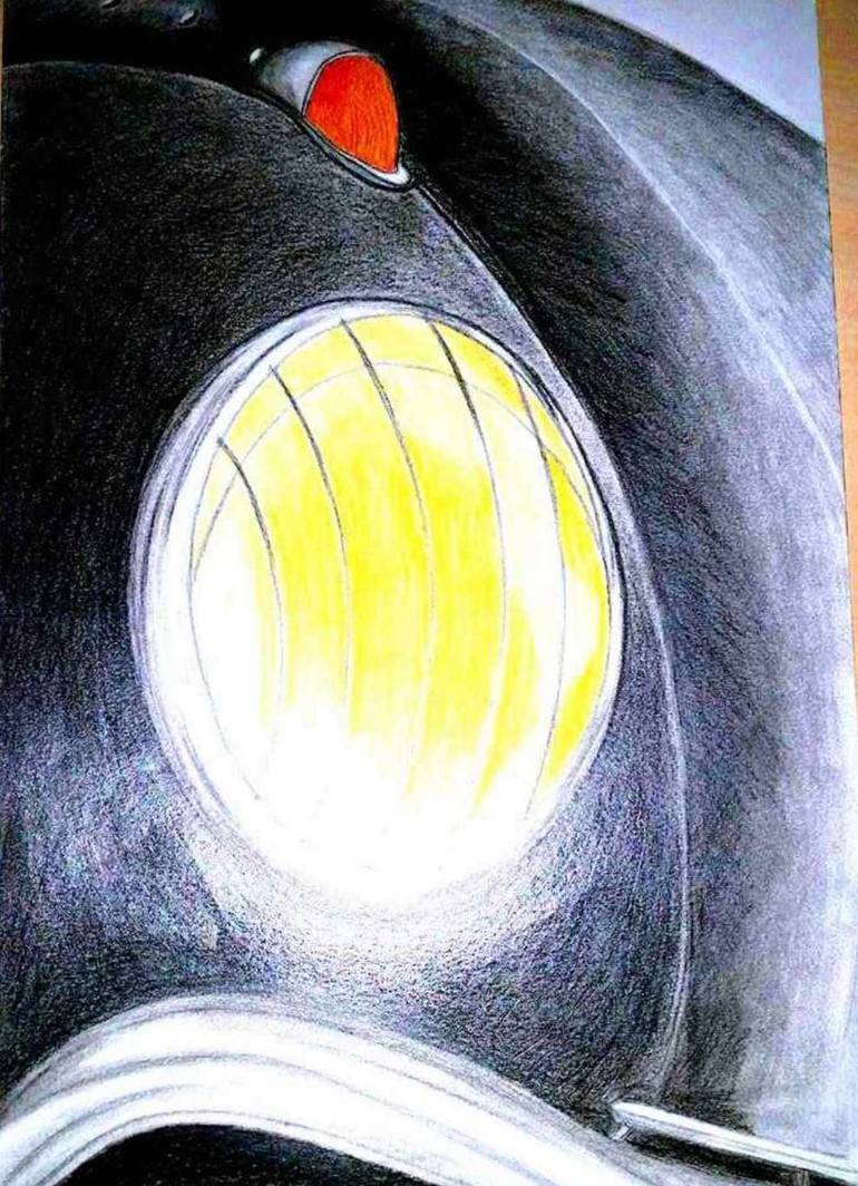 Limited edition digital artwork – Format: 1974 × 2730 px A moment of raw light bursting through darkness — minimal yet expressive. Inspired by an original drawing in colored pencils, this piece explores the contrast between shadow and illumination, metal curves and memory. Part of the BLACK & ...