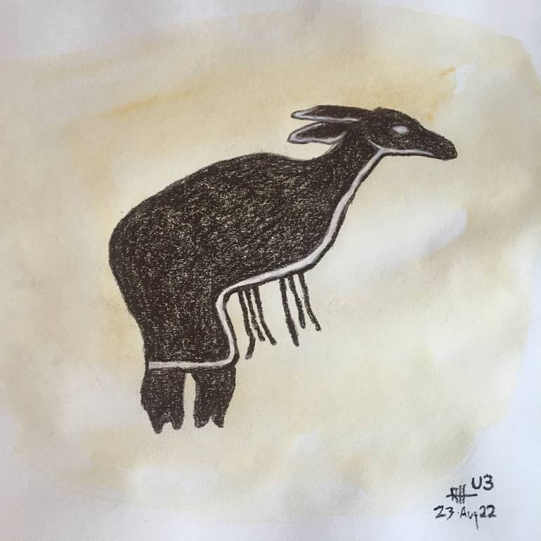 Eland. Watercolour and coloured pencil #drawing on cartridge paper 20x20cm. A drawing inspired by a tracing of original rock art in a cave in #drakensberg . After #patriciavinnicimbe . #rockart #sanbushmen. Earlier in 2022, I revisited one of my ancestral homelands, the Drakensburg of Kwa-Zulu Natal...