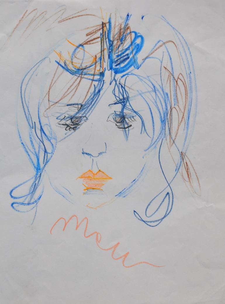 Very elegant portrait of a girl made with colored pencils on cardboard, year 1990. The drawing is accompanied by a certificate of authenticity on photo. This drawing is a unique art piece of its kind, original colored pencils on cardboard, painted by the Italian artist Tonino Gottarelli. - Title: ...