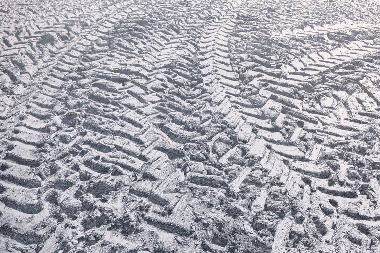 Tractor wheel prints on a field plot.A variable geometry and a suffering earth