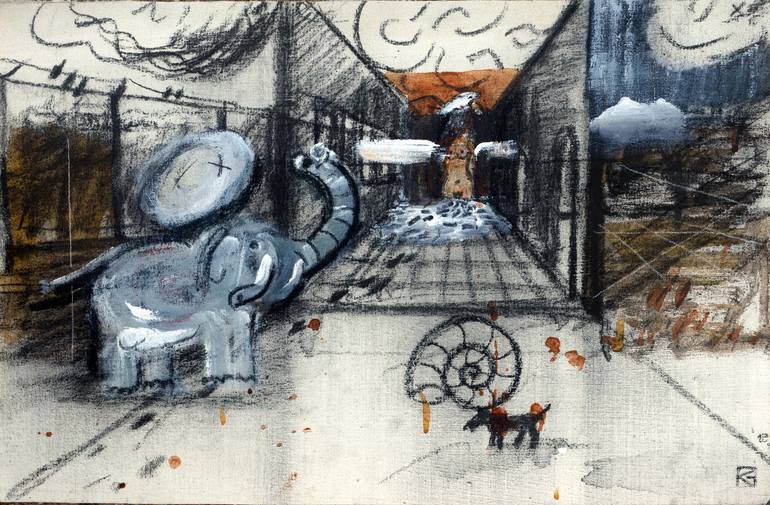 Myths in/about modernity Georg Redžek’s paintings are characterized by allegory, reference to the works of Bosch, Brueghel and Dürer, as well as by self-awareness about the problems of the new-millennial digital age. Seemingly incompatible, these three characteristics meet in Redžek’s works thanks to his combination of classical motifs and representative signs of the modern, contemporary age. In the latest series of works created during 2020 and 2021, the classical motifs are a labyrinth, a white rabbit (as a symbol of resurrection, reincarnation and revitalization), Last Supper and pigs in front of which “pearls had been thrown”. Redžek sets these classical motifs in compositions with representatives of modern and contemporary times, such as displays, bar codes, cables, the Coca-Cola logo, in order to re-examine and display the time in which we live. The labyrinth is an allegorical motif that has fascinated people since the ancient days, becoming a symbol of human perseverance, resourcefulness, skills, but also of complete loss and inability to get out of a given situation. It is therefore associated with feelings of anxiety, alienation, separation from others, fear of complete helplessness, but it also becomes a symbol of contemporaneity for which it is not known in which direction it develops (degrades) and how it can end. To these features of the labyrinth, Redžek adds new values, showing that the labyrinth is more than an adequate symbol to represent the global events that have taken place over the past two years. In one painting, the labyrinth is an allegory of a completely desolate city, seemingly mythical or dystopian, but in fact extremely realistic, because the cities were completely empty during recent lockdowns and restrictive measures. Without a single person, the labyrinth loses its meaning – without a man lost in it, the labyrinth in itself represents nothing, which shows that a city without people on the streets is no longer a city. In the second painting, the motif of labyrinth becomes a set of multiplied walls as a still applied system of separation and segregation. By reducing labyrinth to walls, Redžek introduces a novelty in his work in a sense that he does not create reminisce about Bosch, Bruegel or Dürer, but he quotes works of the contemporary artist Banksy, namely his art of resistance, ie the art of graffiti and murals on public walls.