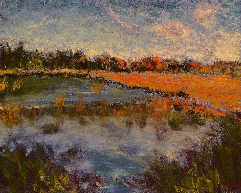 Fall is the time for colors in the wetlands. The usual earthy browns and greens give way to the blossoming color changing of Autumn. Oranges and Yellows take hold as the trees begin to transition into the hibernation of Winter. Hard and soft pastels on 8x10" canson mixed media paper coated in...