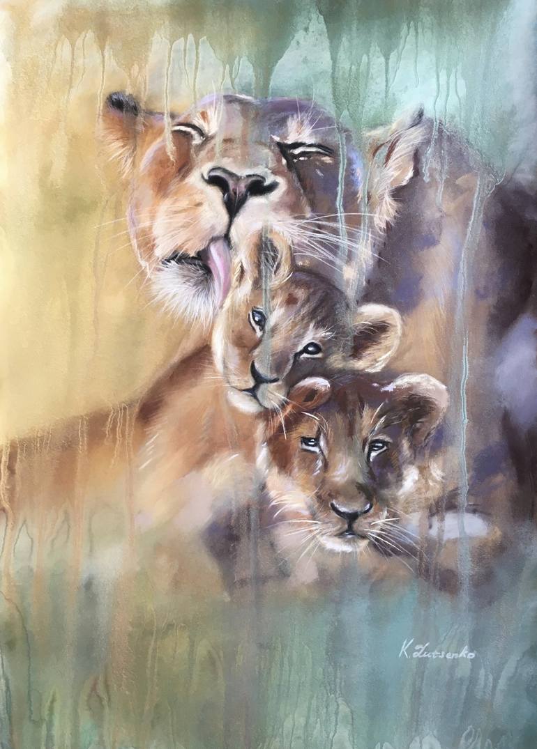 In this stunning pastel masterpiece, Family Chill-Out, Ksenia Lutsenko captures the tender rhythm of nature’s most intimate moments. A lioness gently tends to her two cubs, her affection as nurturing as the soft light filtering through a lush canopy. The cubs, nestled together, reflect the unbreakab...