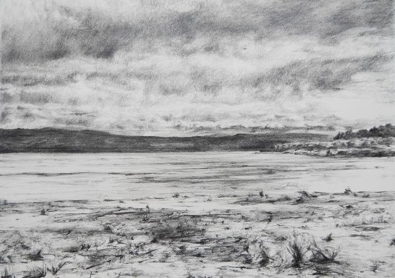 Graphite drawing on Findhorn Bay, Moray, Scotland