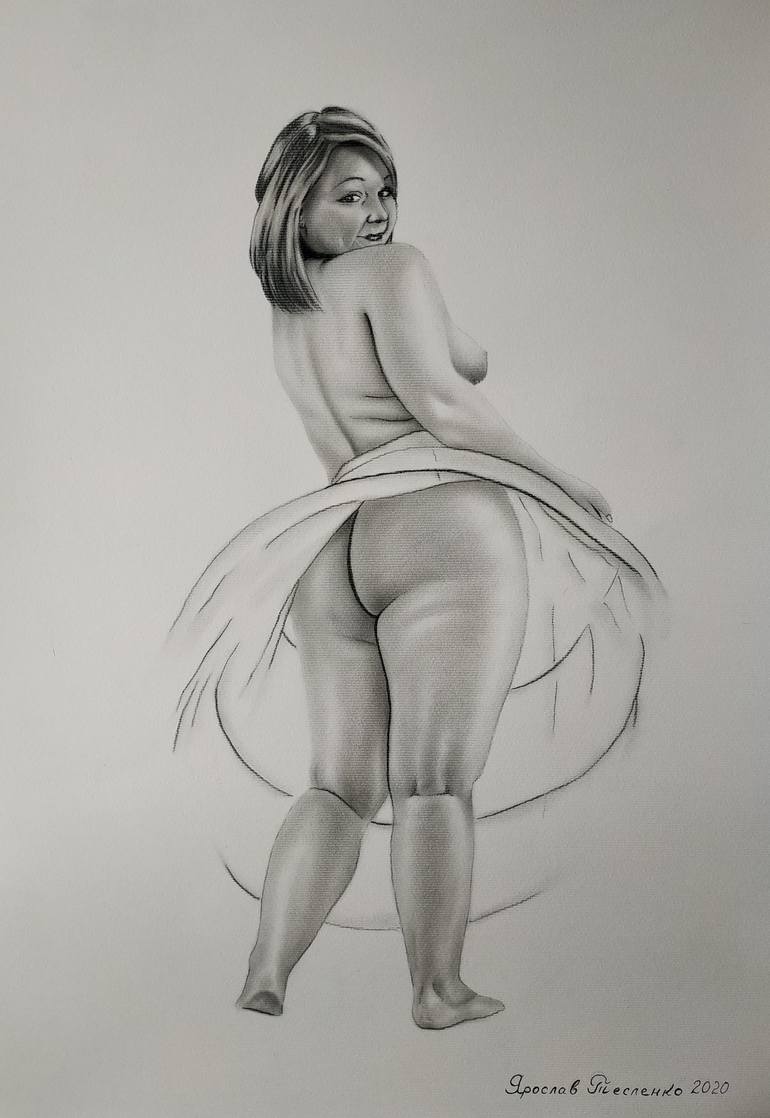 Beautiful flirty girl. Still continuing to find beauty in female forms. What could be more beautiful than female body. This artwork is no framed. The picture is sent packed in a tube. This method is especially safe for this artwork. Signed front and rear. Are sent with a hand written thank you note...