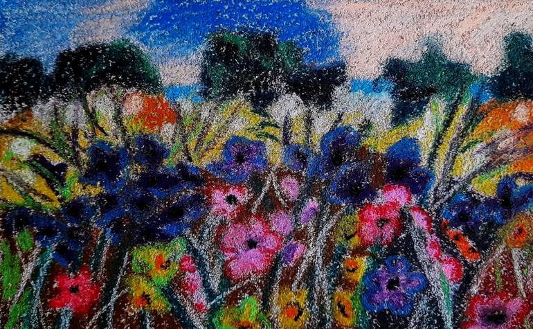 Materials - oil pastel, sandpaper, varnish. Landscape artwork -It is UNFRAMED and perfect for matting or framing Actual colors may vary from device to device 14.5 by 22.5 cm drawing