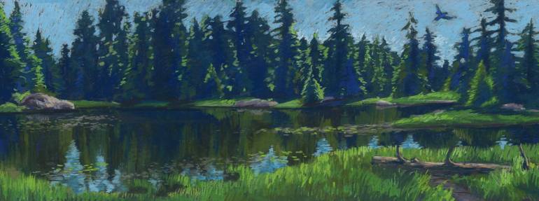 One of the most impressive, but still quiet views I've seen around North Vancouver, Canada. Soft pastel on sandpaper, not framed.