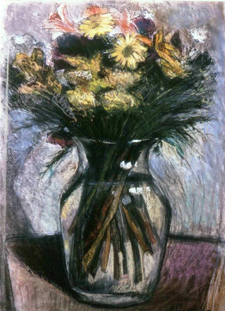 Mikhail Gubin. Flowers in a glass vase. Pastel on paper. 28" x 22"