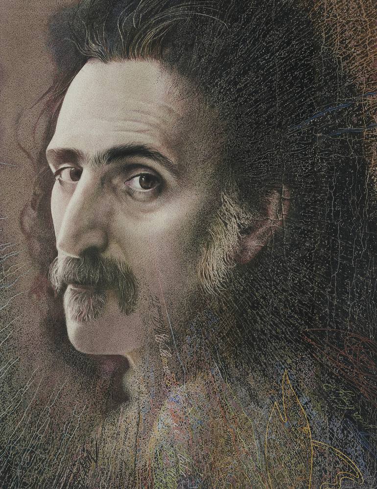 "Frank Zappa" Polychrome pencil and pastel oil. 43 x 33 cm. 2001.
