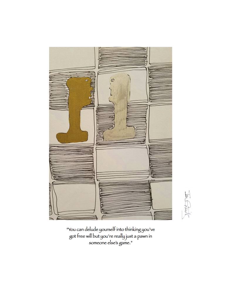 I am a TV writer living in Los Angeles. I have written three books, made an indie movie, and written for various magazines and websites on contemporary culture, politics, and religion. Art and photography have always been passions for me. These drawings are accidental flights of fantasy – spontaneous, right brain meanderings with a mind of their own. I started drawing in TV writers’ rooms. During rewrites I would doodle on my script pages, either to keep my mind alive or to keep my head from exploding. Anyone who’s been in a room at midnight, staring at a sea of blank faces all searching for the same insight, knows this experience. Most of the drawings were tossed out at the end of the night, along with stacks of cold pizza but, occasionally, one would take on a distinct character, or style, or evoke a mood or emotion. Those were interesting enough to keep, and eventually enough of an incentive to buy sketch pads and pens, and pursue it outside of work. I’m not an artist. Having read Drawing on the Right Side of the Brain, and taken some art classes, I knew the trick was to draw without trying to draw -- to let go of any desire for a specific result and just let it happen. The “not-do- ing” of it became an interesting exercise. If I let go, it occasionally went somewhere interesting. If I got too deliberate, the results were forced. Sometimes, when I felt stuck in a familiar pattern, I’d try to break out of my head by taking a different color pen, and attacking the page randomly. Once in a while, I got in the zone. Though, as with all attempts at mindlessness, once you become aware of it, it’s gone. Of all the drawings I’ve done to date, these faces seemed to express a unique attitude or emotion. I then added captions in an attempt to capture or enhance the mood. Whether there’s anything Freudian going on in the darker images, I have no idea. Regarding the photographs I've taken, some go back to a demonstration in Harrisburg, PA in the early '70s. Others were taken on the streets of LA.