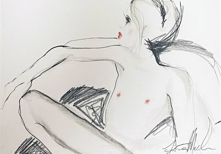 Girl in bath - II - watercolour, pencil on paper. Original by Fiona Maclean. Inspired by photography of Brooke Shields controversial photos Garry Gross and Richard Prince. Fiona Maclean was chosen as an ‘Artist to watch’ and amongst a strong emerging talent of Artists in the ‘One to Watch’ series ...