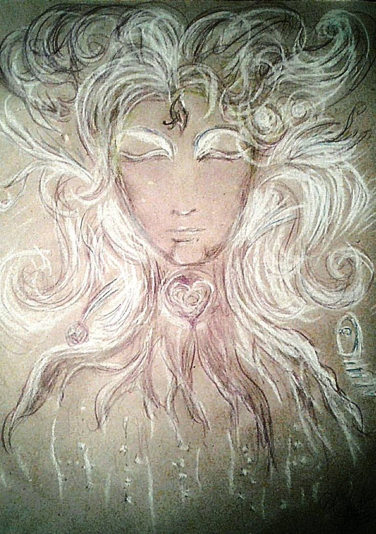 Goddess of Nature.The image of a tree is like the face of some woman with closed eyes.She seems to be asleep, but this is not so, because at the level of her Third Eye one can see like a hollow of a tree, and she herself seems to be this tree.Branches, distant stars, doors with stairs, a hollow with...