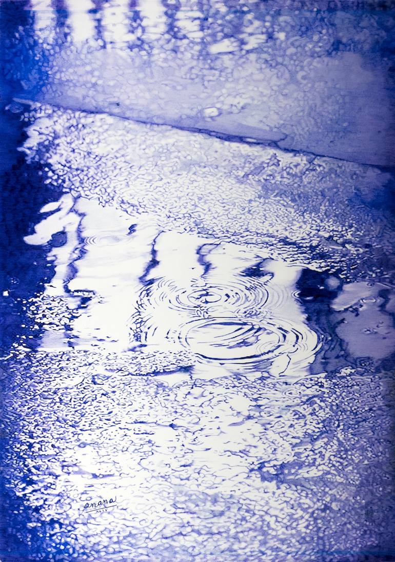 Dessin au stylo bille Bic sur papier Canson, d'un goutte pluie tombant sur un trottoir mouillé