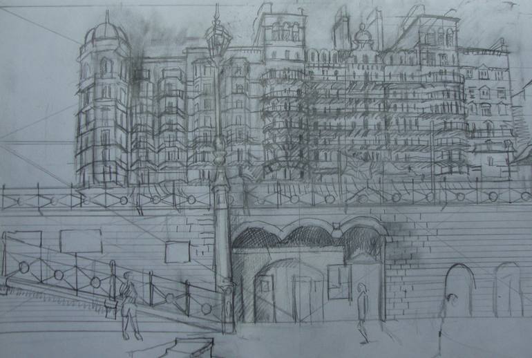 Pencil drawing on paper this print is already mounted the actual size of the drawing in a mount is 27x40cms in a mount it is 40x50cms.