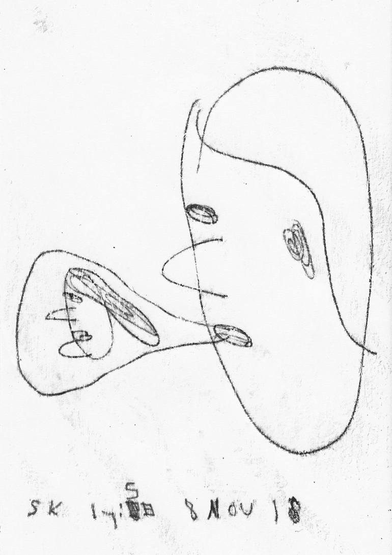 Spontaneous monotype sketch of head. Monotype printing ink on 80gsm cartridge paper. Standalone, original print. Signed by artist. Suitable for framing.