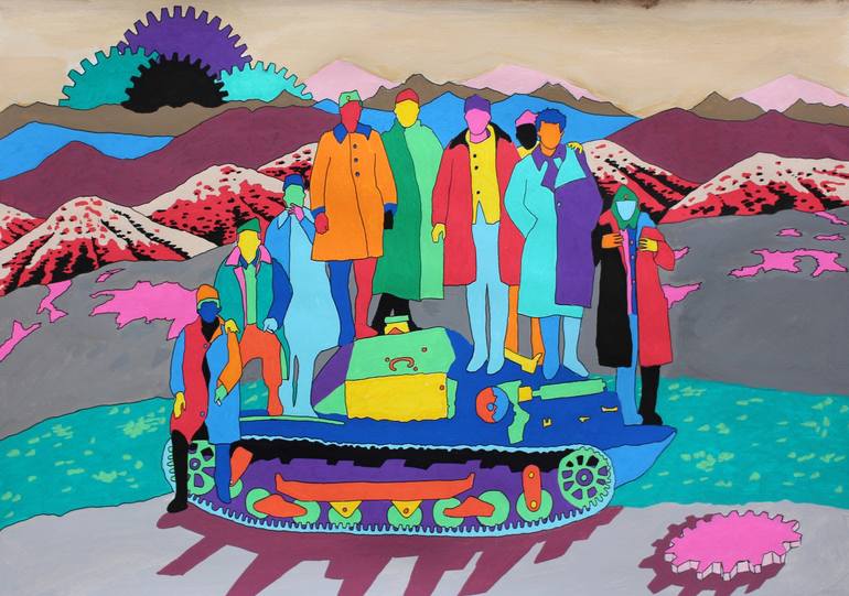 This work is a study influenced by my work on video and explores the matter of memory. This colored drawing is based on a old photo from WW2 greek troups near of the albanian border.The intense chromatic oppositions are used to trigger questions about atmosphere, identity and memory.
