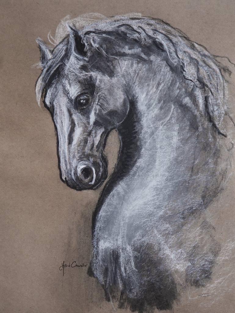 Horse Study (cb 13) by Astrid Chevallier Charcoal and white chalk on brown paper. --- *** Medium: charcoal, white chalk on brown kraft paper *** Size: 9 W x 12 H in. / 22.9 x 30.5 cm *** Year: 2020
