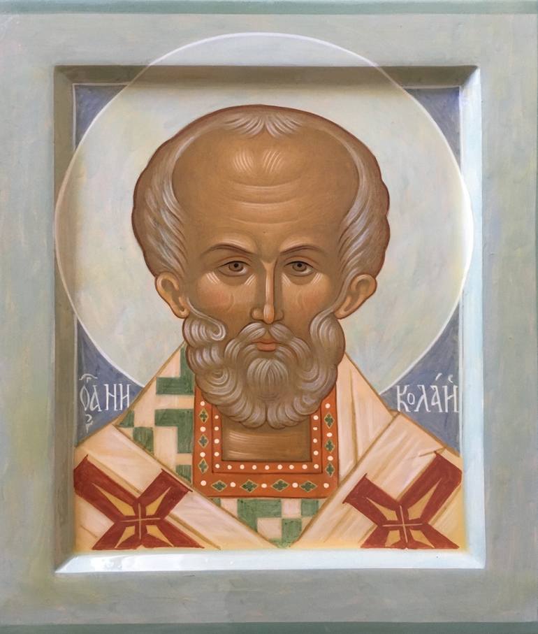 The icons are painted in ancient technique, on a linden board, with natural pigments ground on egg yolk, using gold leaf. The icon of St. Nicholas is written in the Byzantine style. The original is located in the Hilandar Monastery on the island of Athos (Greece).