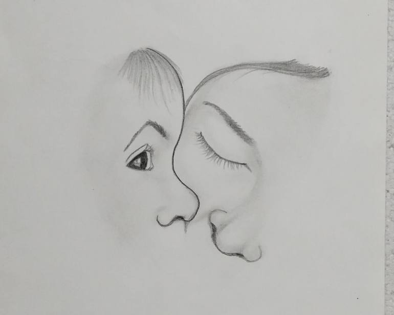 This artwork beautifully captures the deep, unconditional love between a mother and child through an illusionary composition. At first glance, it appears to be two faces sharing a tender moment, but a deeper narrative—one that symbolizes a mother’s affectionate kiss and the warmth it brings. The ch...