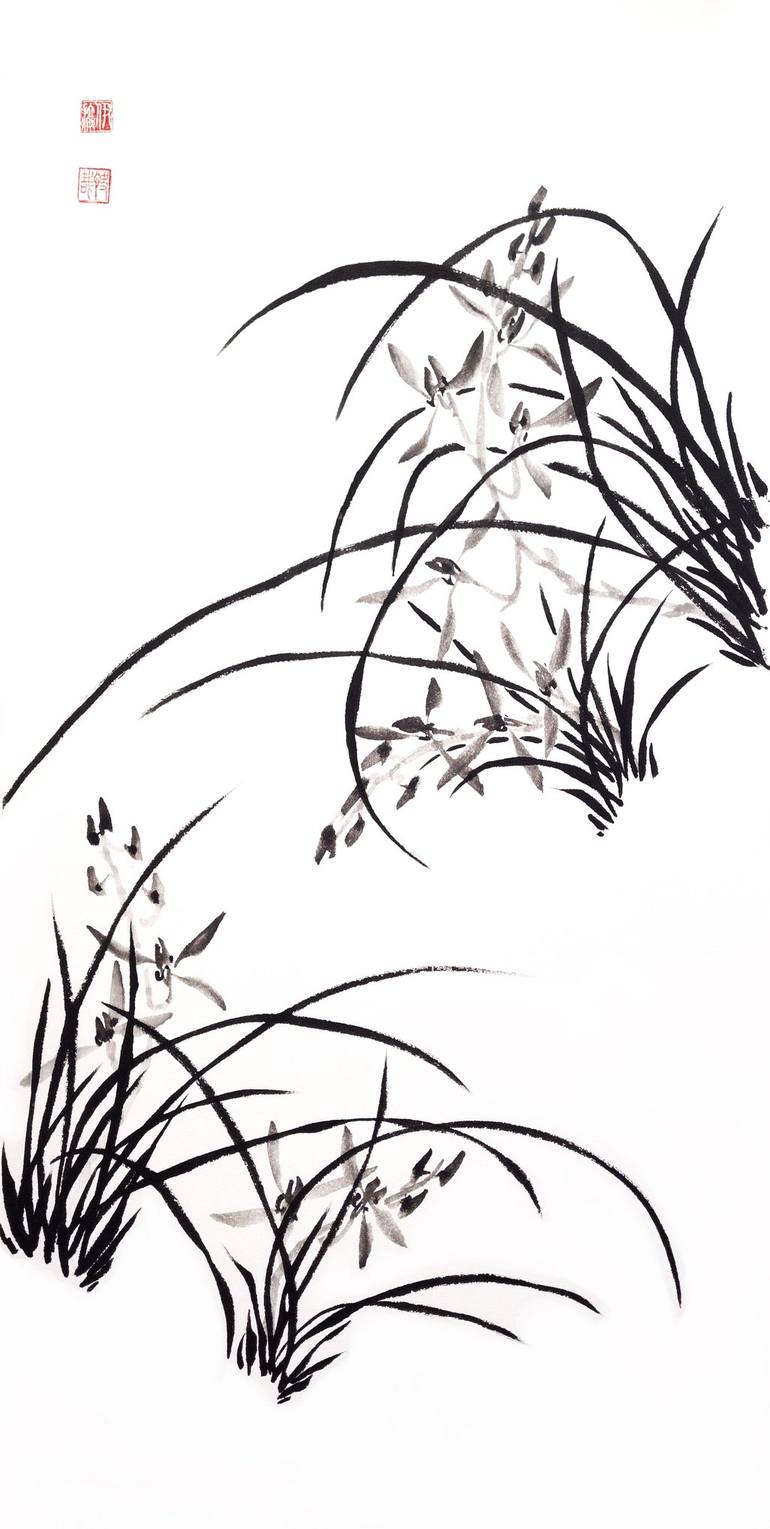 Dear buyers, please note!!! This painting is now on display in my solo exhibition and will be available for purchase and shipping after November 5, 2023. Original Chinese Brush Painting by Ilana Shechter. This artwork is a spontaneous style of Chinese Ink Painting. The orchid, together with the pl...