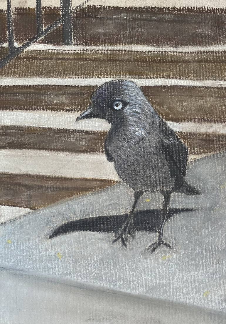 jackdaw, bird, pastel, chick, animals, cute bird, bird of paradise, nature, garden, park, branch, cute pillow, bird in a cage, very cool Pastel original beautiful work