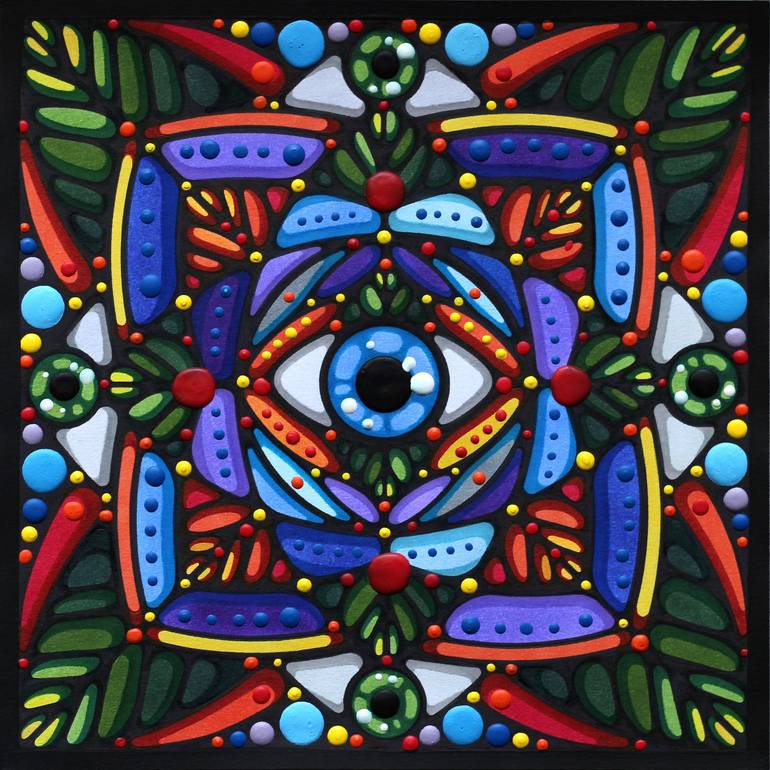 The drawing is made with markers, acrylic elements paint and framed with black acrylic paint.