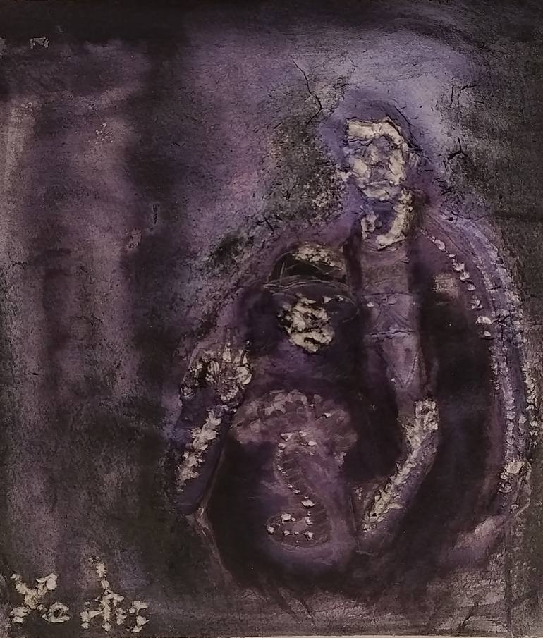"kids" is an emotional dark painting made with mixed media: underdrawing with pencil, Indian ink added diluted with water washings and final lights made with "sgraffito" technique all made in heavy ink paper.