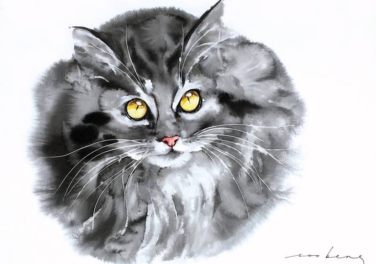 Cute kitten with strikingly hypnotic eyes that captivates. Ink and watercolour on 300gsm smooth cotton paper. Photo reference from Avel Chuklanov-unsplash.