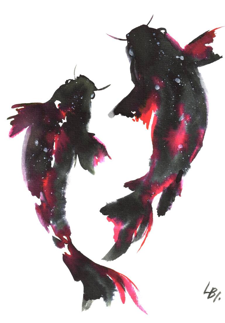 Watercolor of koi fish in traditional japan style drawing Koi-fish , in addition to their bright unusual coloring and decorativeness, carry a deep meaning, are a symbol of perseverance and willpower, courage and success achieved by overcoming obstacles. A wonderful talisman for your home, right?