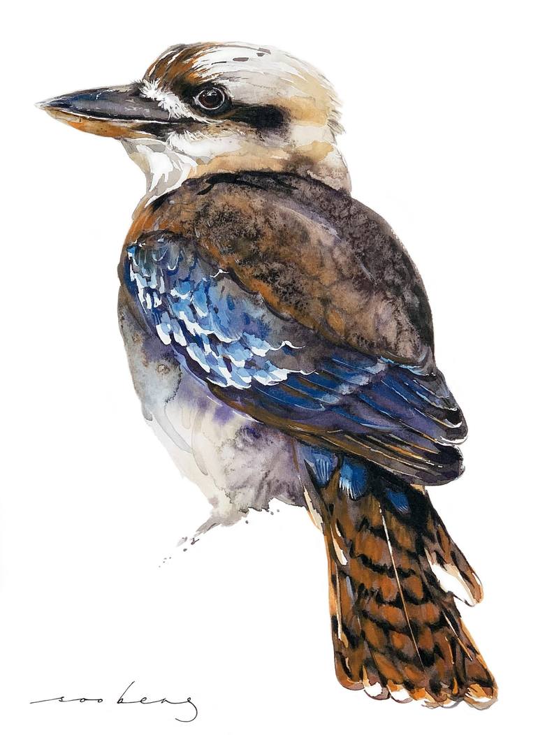 A well known symbol of Australian birdlife, the Kookaburra is largest of the Kingfisher family, distinguished by its raucous laugh. Watercolour on Saunders Waterford 300gsm smooth cotton paper. Photo reference from Peter Scholten-unsplash.