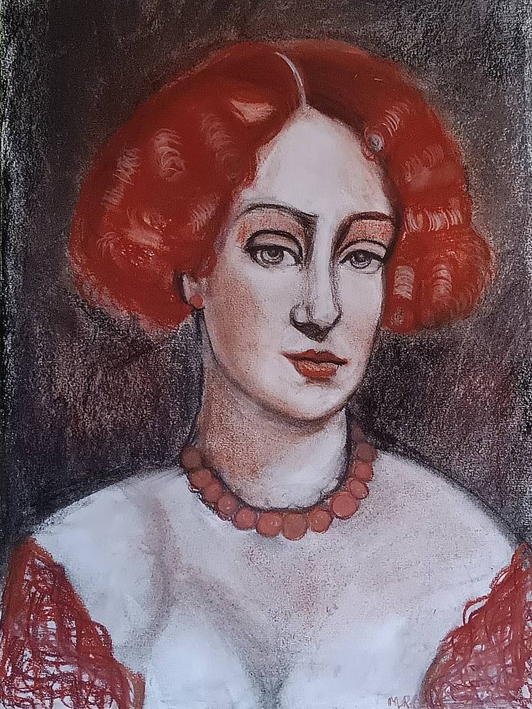 "The courtesan" is a portrait in charcoal red and white chalk in an old style of a woman I imagined being one of the courtesans in the Versailles Castle under Louis XIV. I chose to use red chalk to give it a more dramatic effect and have her look at the viewer as she wanted to seduce him... It is si...