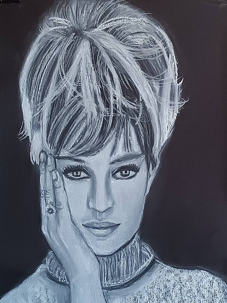 "La dolce Vitti" is a tribute to the unforgettable Italian actress who just left us, but will always stay in our hearts. The portrait is made with white pastel and charcoal on black paper and is sold with a beautiful black frame. I was selected to be a part of the exhibition Focus art fair "BOOM" wh...