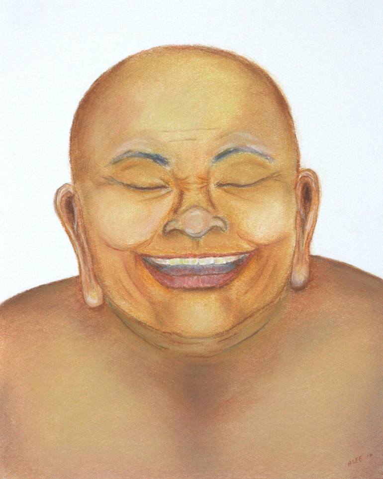 Buddhism has guided me in determining what is important in life. I want to remind viewers in my Laughing Buddha (another artwork in the series of Buddhas) that religion is not always serious. I like that the medium of pastel allows me to do the blending of color and value. I also like the brilliance...