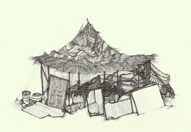 This drawing, initially approached by the artist as a realistic subject, has, over the course of its development, taken an imaginary or even surrealist turn. This is probably due to the fact that the author deliberately turned his back on the subject, she had barely started it, to put down on paper ...