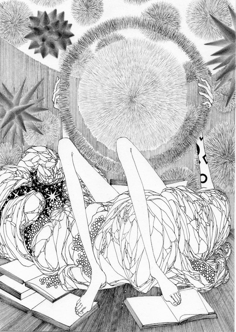 Sitted searching, lying, reading, dreaming, at the era of Corona, a daughter of sloth. It's one of the free drawing series of Legs, shown in an exhibition titled "Ecology of the Mind II: Talking Landscapes" in 2022 at Shinsegae Gallery, at Gwangju branch.