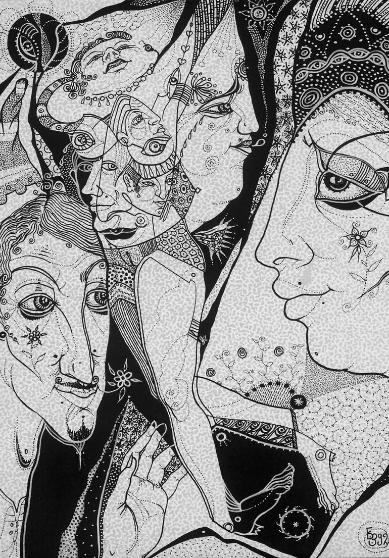 Ink, Cardboard, The comedic perception is fantasy and absurd. The creative work of my youth.