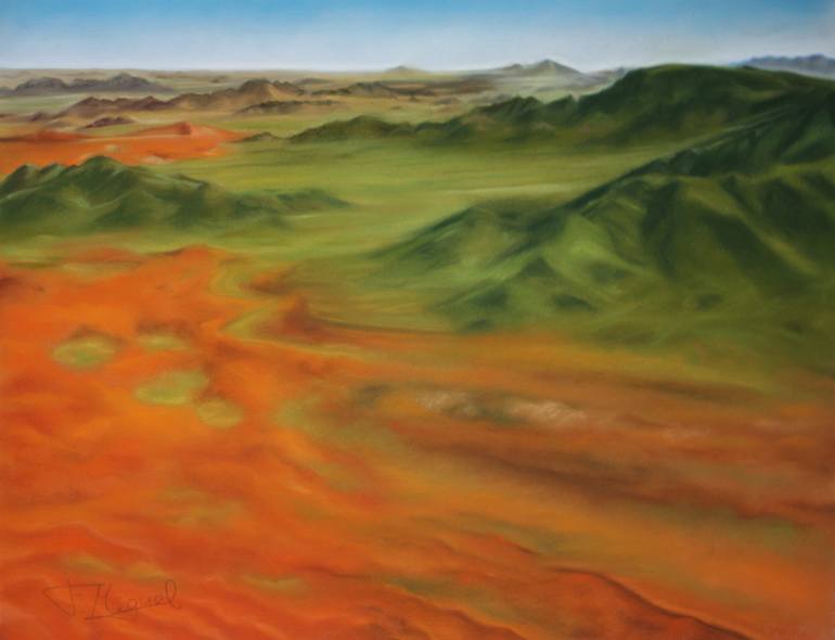 The bright earth colors glow in a summer sunny day.You can go to Namibia desert to see it or just imagine you are there.