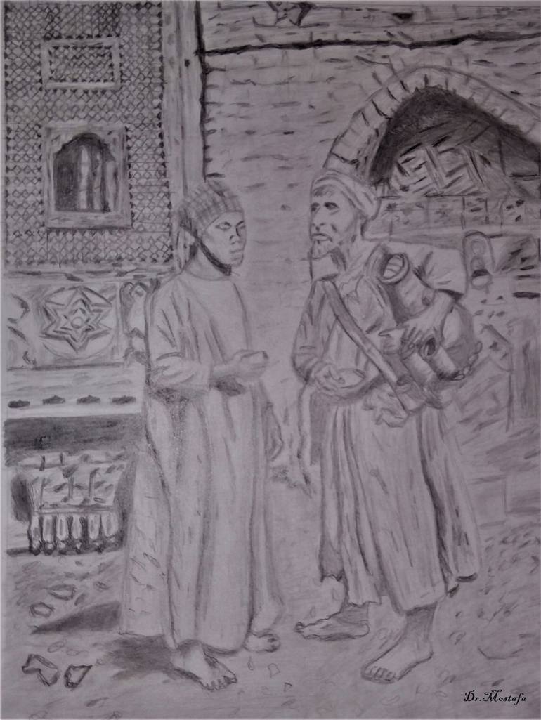 Pencil drawing on paper of a licorice seller in Egypt in the early last century.