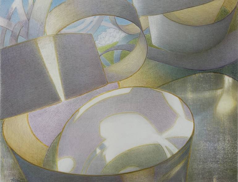 My work does not conveniently fit into a category. There are elements of abstraction and glimpses of "reality". One might guess at surrealism, but I do not think of my work as such. My objective is about taking a fresh look at the traditional landscape. By using this familiar format, a dialogue is created between the viewer and the image. The brain always attempts to organize the lines, shapes and colors it perceives; with no easy reference point, there may be no connection. A recognizable arrangement even though out of the ordinary begins the communication. Born 1949, New York City. U.S.A.I have been an artist since childhood.I consider that the best is still ahead of me. It is my identity. I draw, paint and sculpt. For more than a decade now, my subject matter in art has been based on theories of a futuristic world. All my work has originated from or related to, cast off objects and recycled materials. My first major drawing on paper series, begun end of 2008 into 2009, The Peripheral World (or Peripherals), was first inspired by thrown away paper tissues, and creased papers. I am currently working on my most large and complex pieces to date.