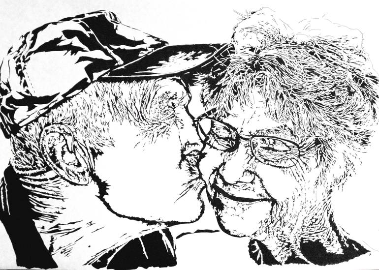 This is a drawing of my grandparents. Shortly after I took the photo for this drawing my grandpa passed away. The photo was initially used to make a different image for a mural proposal. I hope this image conveys the love that these two shared for each other despite all the challenges life had shown...